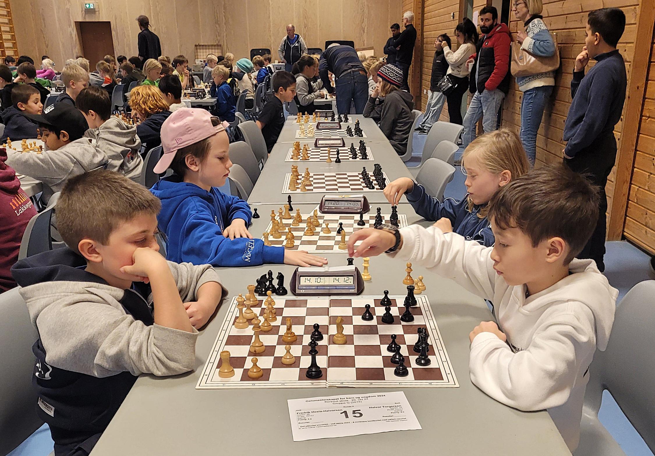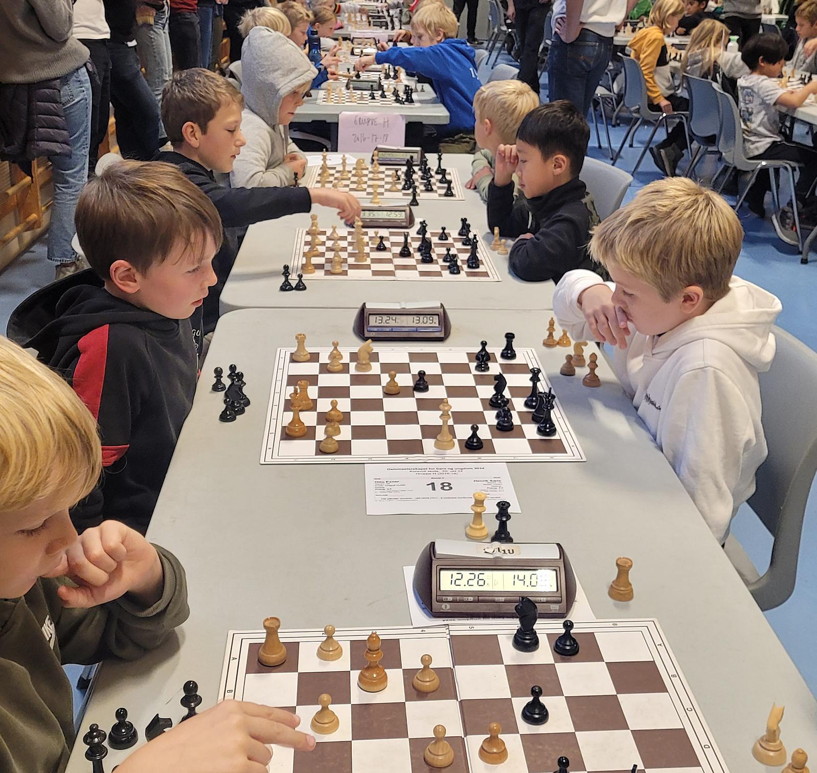 De aller yngste spillerne våre som deltok i klasse G (2015) og H (2016 – 2018) spilte mange spennende og gode partier – det ble kjempet fair og godt på alle bord, og det ble både seire og remis. Flott innsats av alle sammen!
