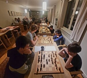 Førstkommende søndag spilles første runde i Østlandsserien, og på onsdag varmet 6 av lagene våre opp med en uformell hurtigsjakkturnering hvor det ble spilt 4 runder med betenkningstid på 10+10 og servert pizza og brus.