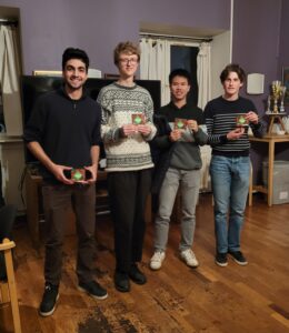 Etter 4 ferdigspilte runder stod både OSS Junior 1 (Hoang, Arne, Arsalan og Oscar) og OSS Junior 4 (Oskar, Henrik G, Eivind og Alexander) med 6 lagpoeng, OSS Junior 1 gikk foran med 12,5 individuelle poeng mot OSS Junior 4 sine 9,5. Som kveldens eneste spiller vant Arne 4 av 4!