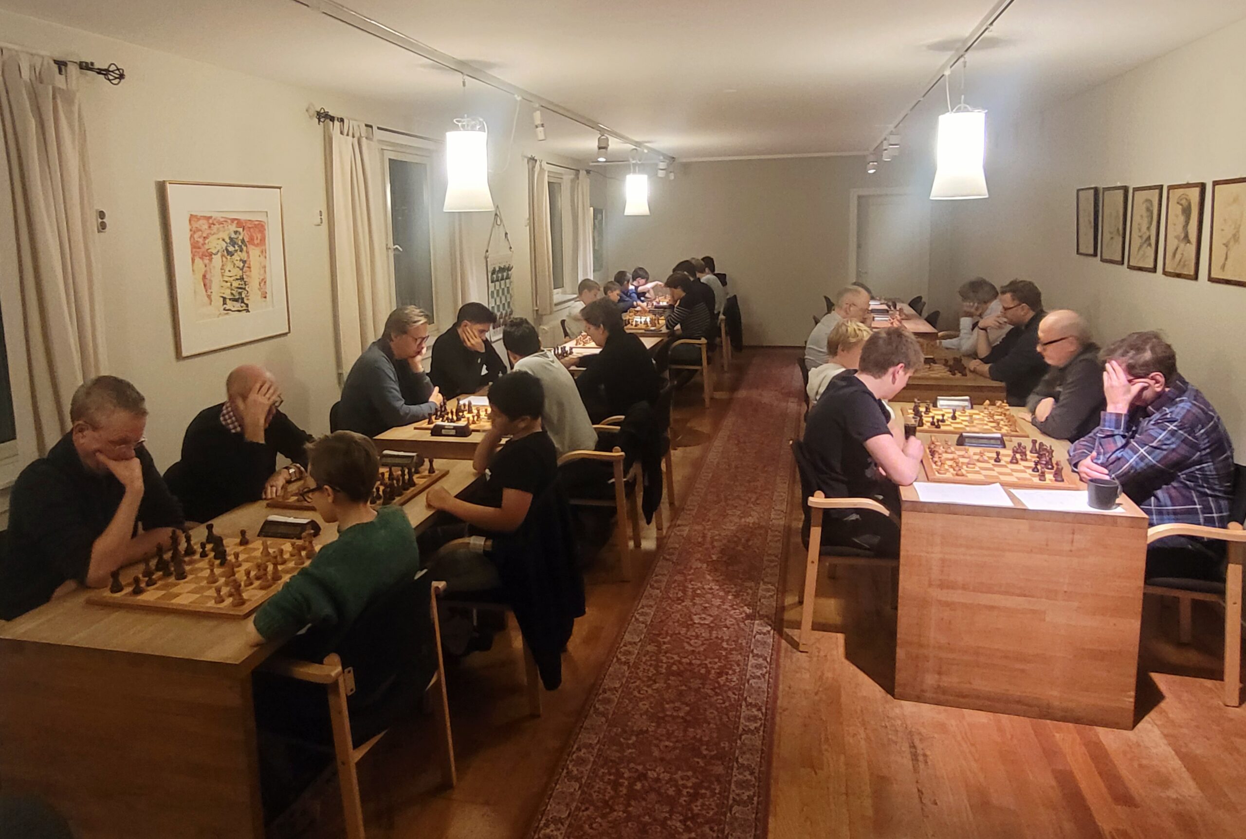 Etter 4 ferdigspilte runder stod både OSS Junior 1 (Hoang, Arne, Arsalan og Oscar) og OSS Junior 4 (Oskar, Henrik G, Eivind og Alexander) med 6 lagpoeng, OSS Junior 1 gikk foran med 12,5 individuelle poeng mot OSS Junior 4 sine 9,5. Som kveldens eneste spiller vant Arne 4 av 4!
