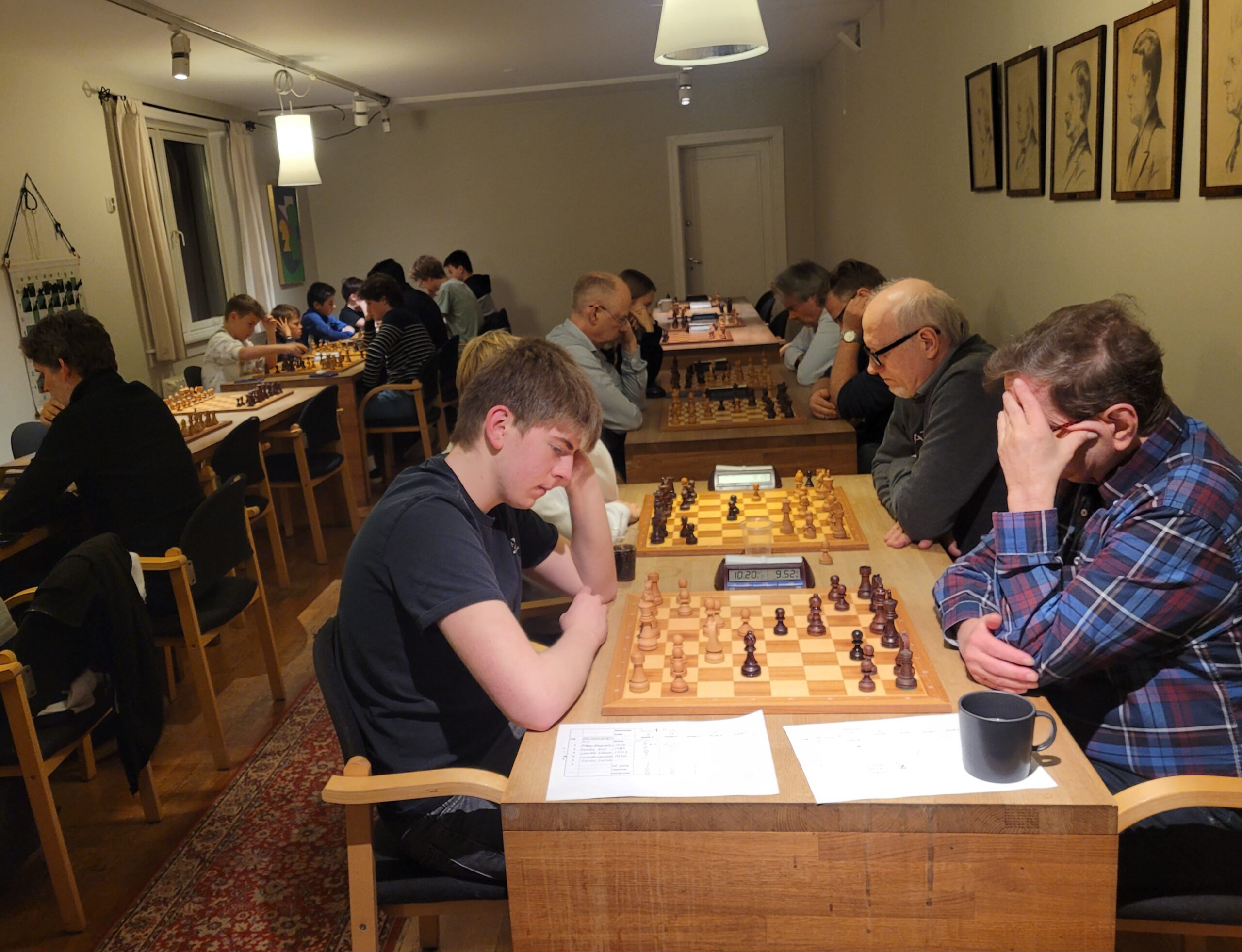 Førstkommende søndag spilles første runde i Østlandsserien, og på onsdag varmet 6 av lagene våre opp med en uformell hurtigsjakkturnering hvor det ble spilt 4 runder med betenkningstid på 10+10 og servert pizza og brus.